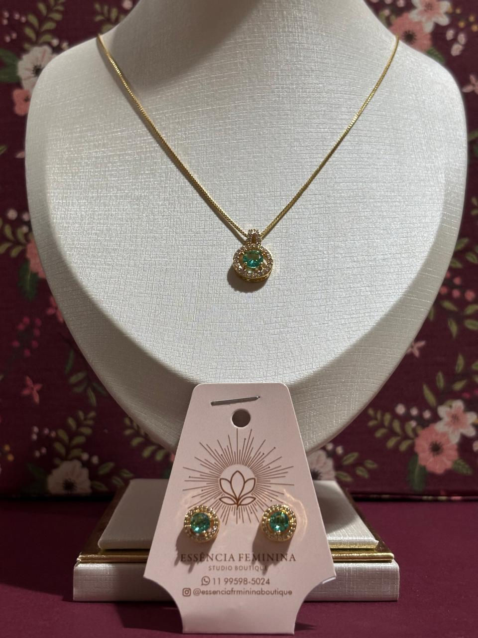 Colar e Brincos Pedra Verde